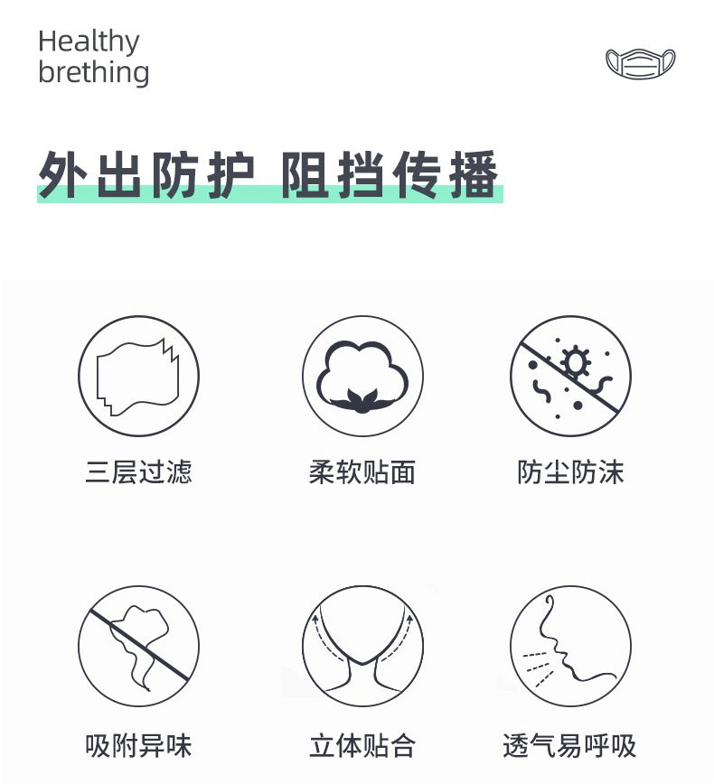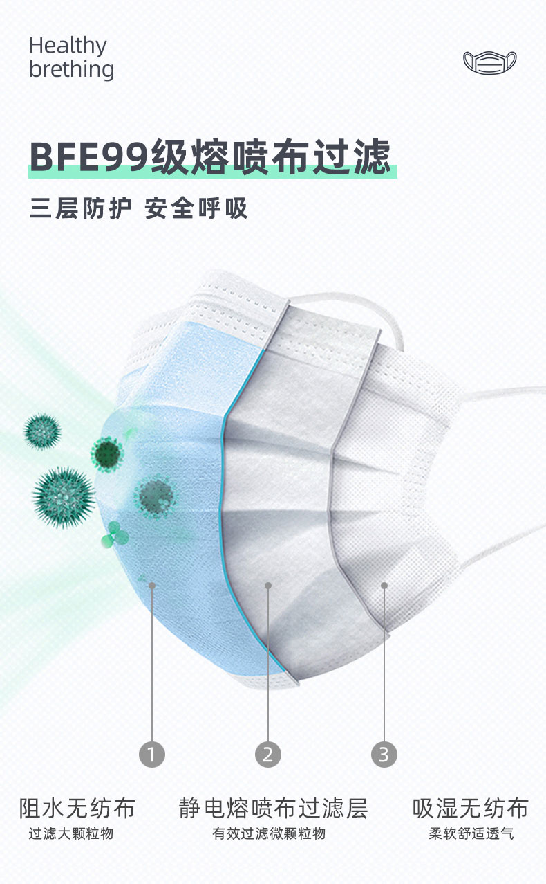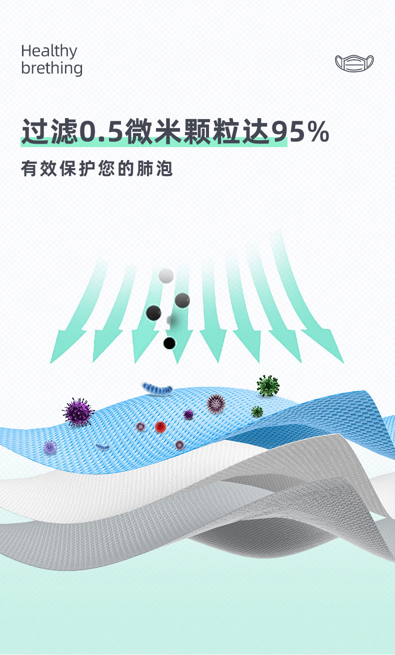 內(nèi)層為親膚材質(zhì),中層為隔離過濾層,外層為特殊材料抑菌層