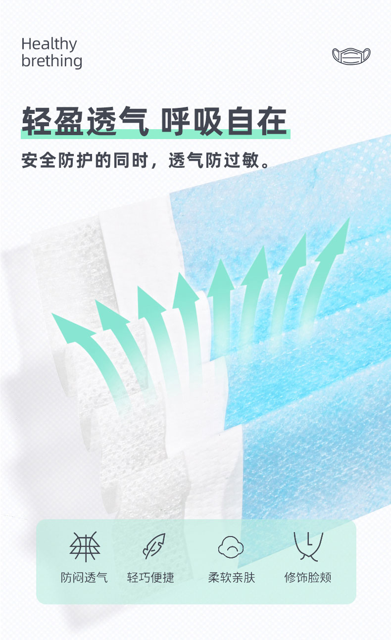 疏水透氣性強(qiáng),對微粒帶病毒氣溶膠或有害微塵的過濾效果顯著,